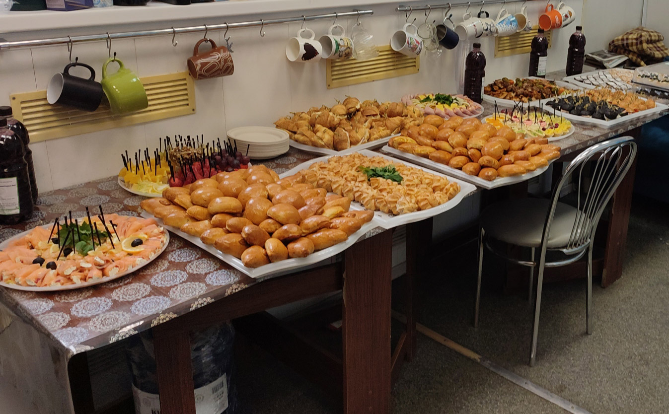 Доставили в указанный промежуток времени. Пироги были вкусными, еще теплыми. Закуски, рулетики, тарталетки разлетелись быстро. Всё было вкусно. Спасибо!