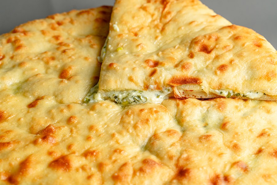Традиционный осетинский пирог с сыром и зеленым луком.