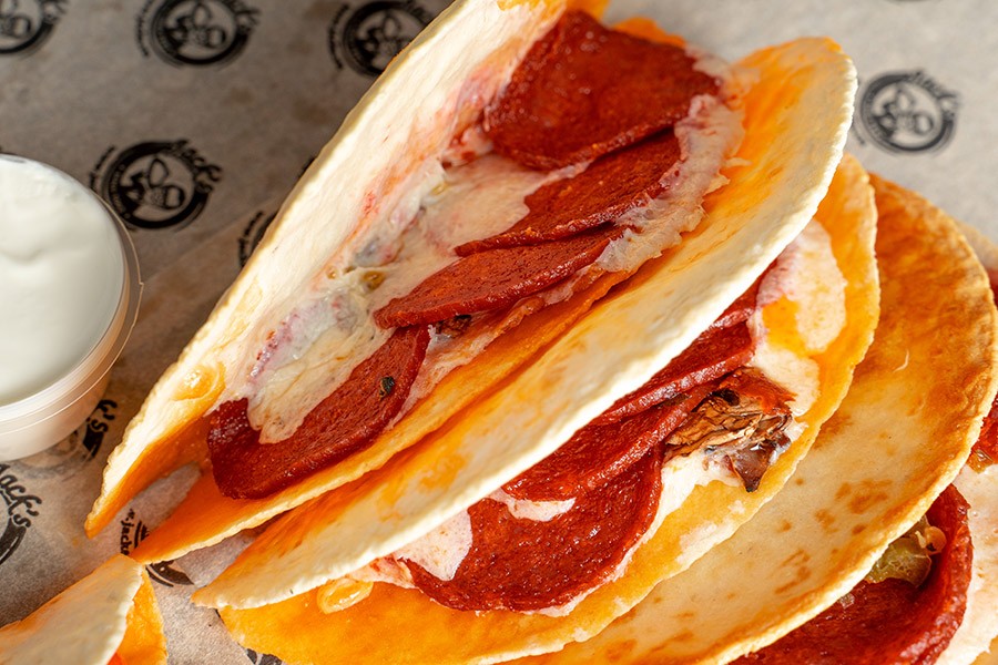 Оригинальная закуска Пицца-дилья — вкусное сочетание пиццы и тортильи в одном блюде.
