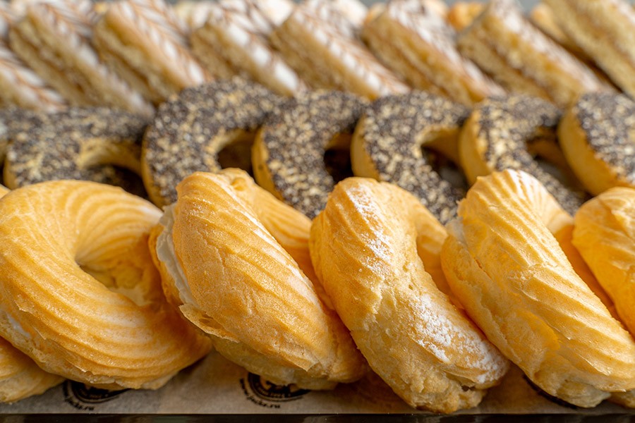3) Творожное колечко – воздушное кольцо из заварного теста с обильной начинкой из нежного творожного крема (10 шт.);