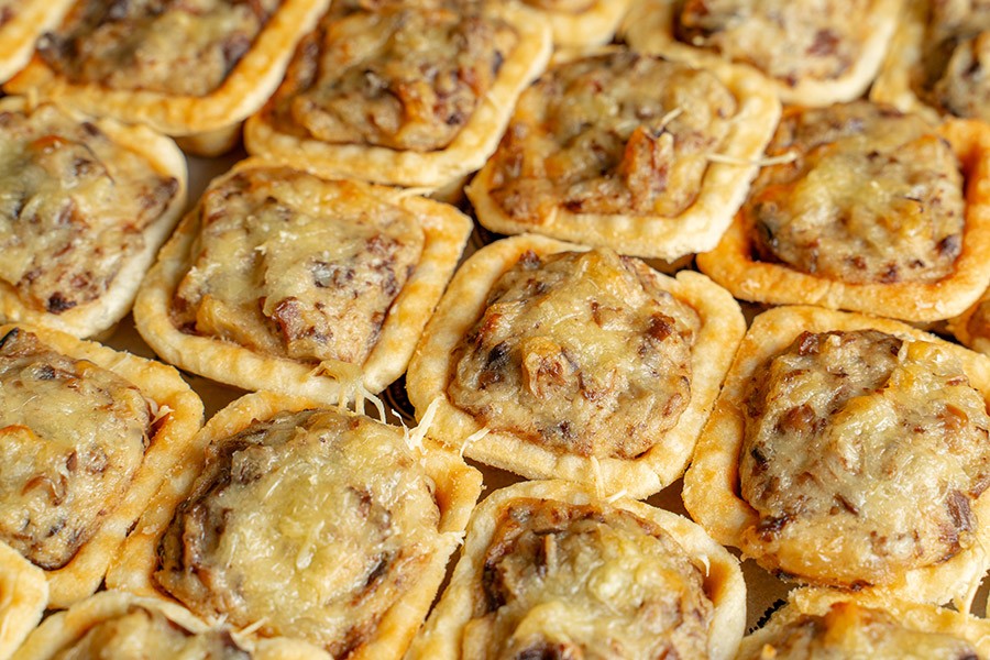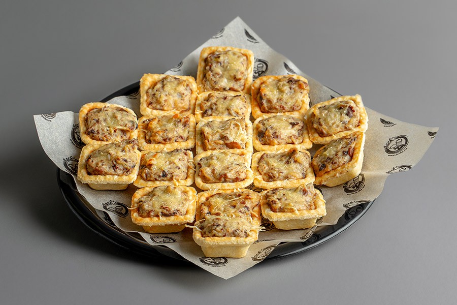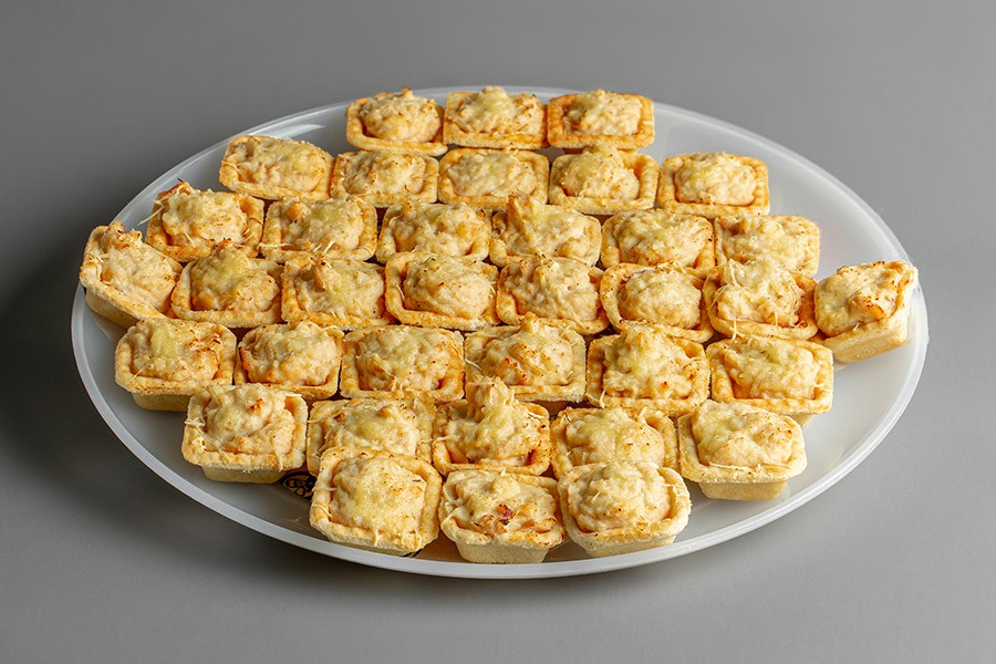 Мини-тарталетки с жюльеном из грибов, запеченным под сыром.