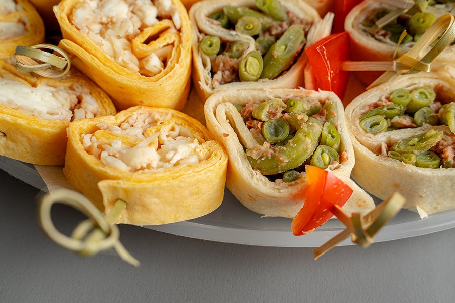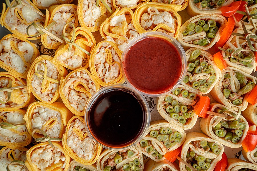 Ассорти рулетиков из завернутой в нежную тортилью начинки для любителей кавказской кухни: