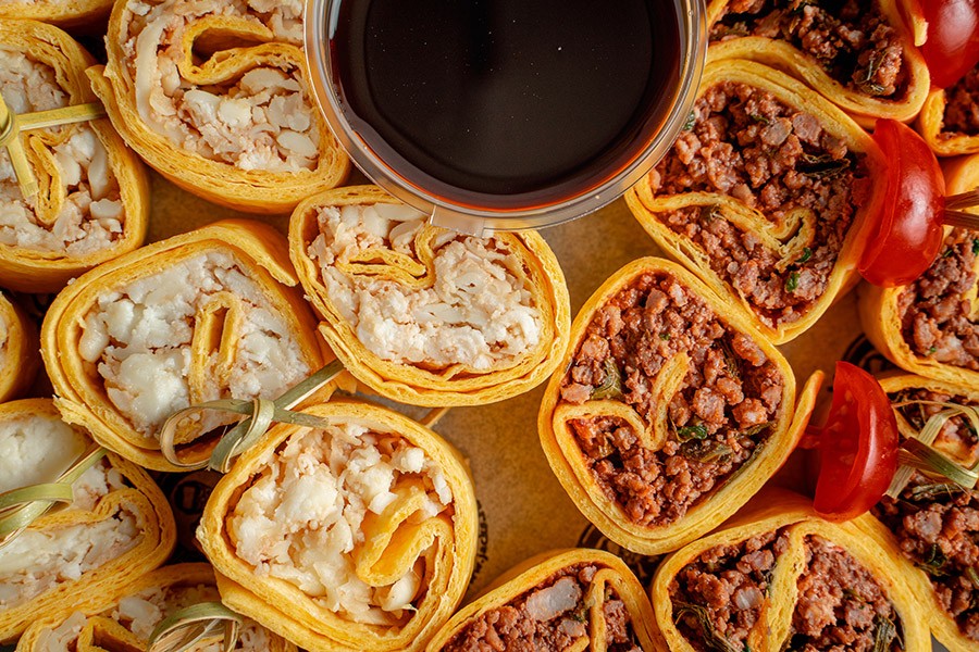 (2) «Осетинская мелодия» – сырная начинка из Адыгейского сыра и Сулугуни (24 шт.).