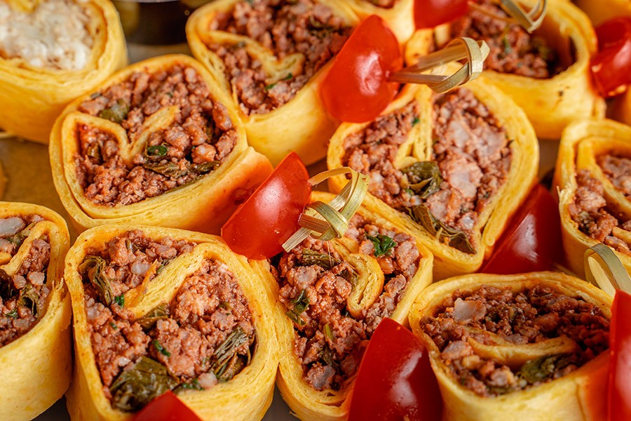 (1) «Легенды Арарата» – фарша из говядины и свинины, виноградные листья, чеснок, кинза, лук, томаты черри (24 шт.);